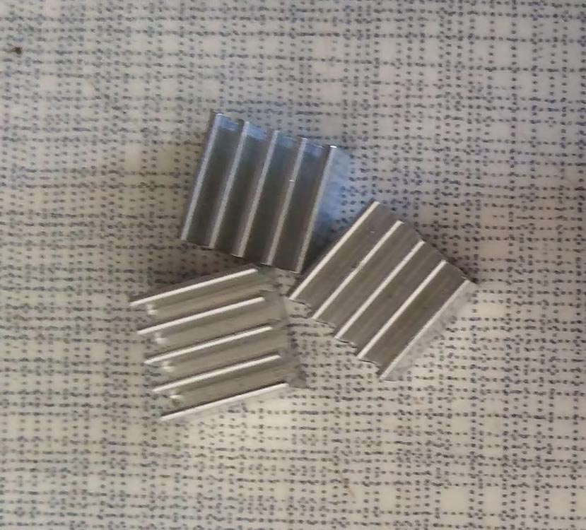 Two heatsinks, one unmodified and one dremeld down to 3 mm height.