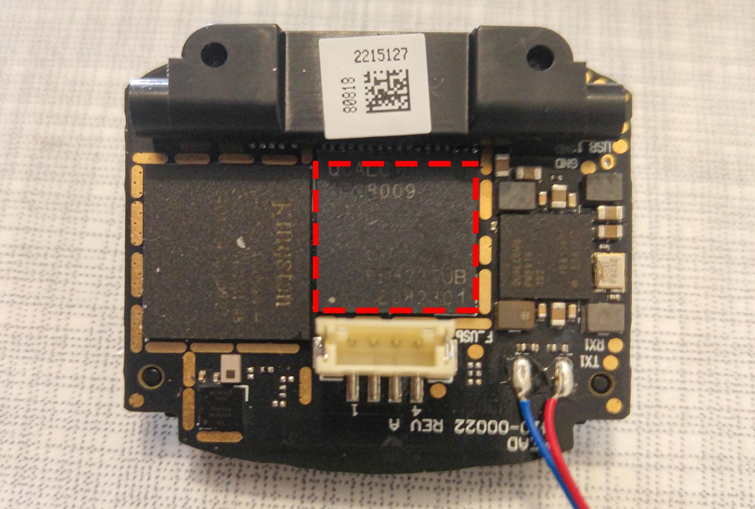 This is Vector's mainboard. In the middle (with the red frame) you can see main processor. To the left of that is the RAM. The heatsink will be glued to the Snapdragon CPU.